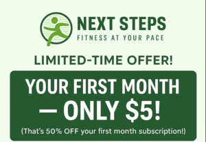 Discounted First Month: Try Next Steps Fitness Subscription at a special reduced rate — no long-term commitment required.